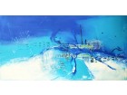 abstraktes Gemälde in blau / weiss